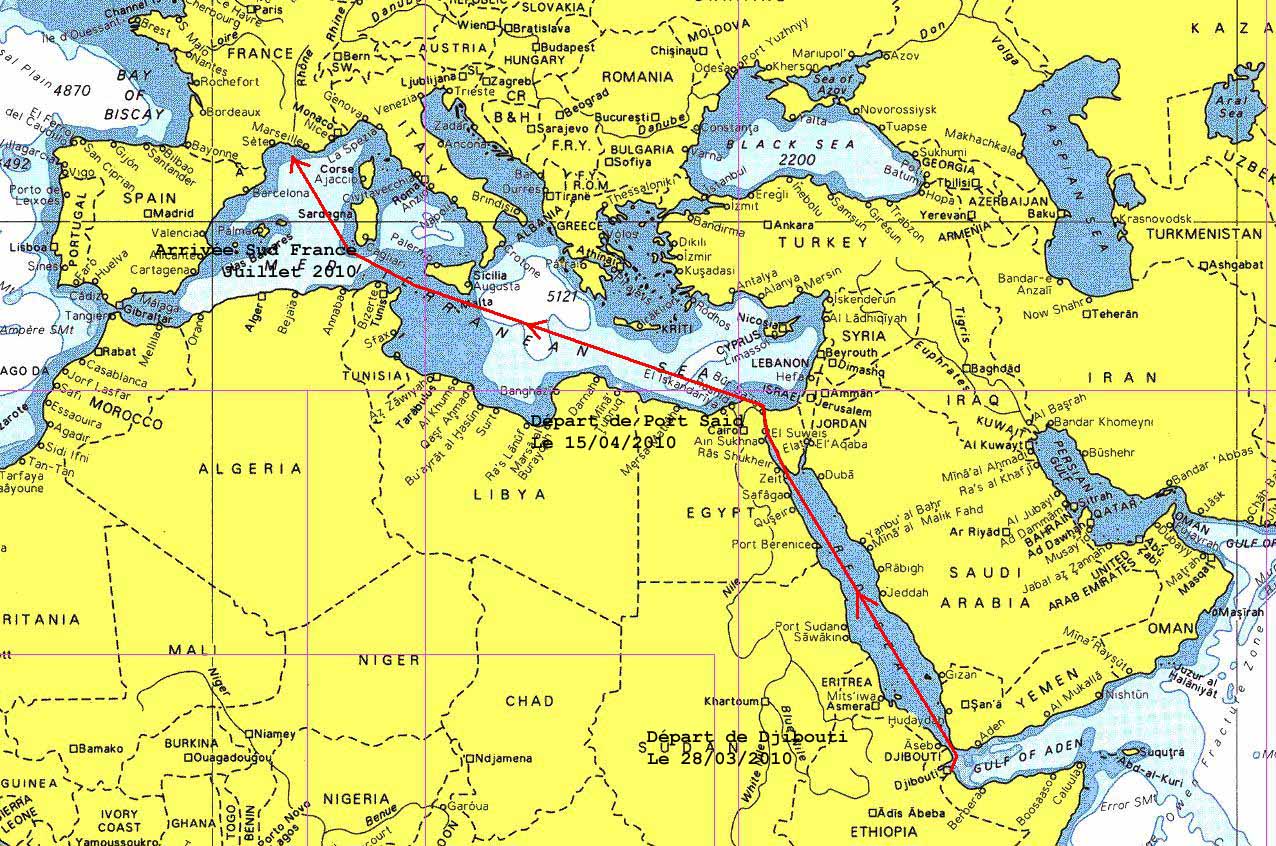 Vents contraires toute l'année. Possibilité de s'arréter à Massawa en Erytrée après 360 miles (voir p 543). Ensuite possibilité à Hurghada ou Safaga en Egypte. Avoir des coupures USD pour le passage du canal |