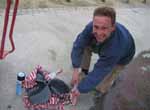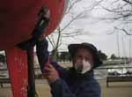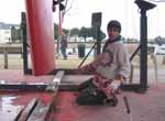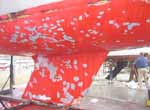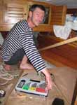 Nous avions prévu de refaire la coque (antifouling et peinture), Les travaux que cet incident ont nécessités nous ont obligé à sortir le bateau de l'eau une quinzaine de jours. Cela nous a laissé le temps de faire un travail beaucoup plus important qu'initialement prévu. C'était une bonne chose car la coque nous a surpris par le mauvais état de ses peintures. Tous ces travaux ont été réalisés avec l'aide indispensable et permanente de Christophe qui s'émerveillait à chaque découverte de la conception du bateau.
