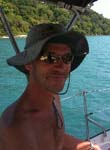 Nous sommes à l’île de Kho Roc. En fait il ya 2 îles : Kho roc nok et Kho roc noï, séparées par une passe. C’est là que nous jetons l’ancre par 10 mètres de fond, à l’abri du vent. L’eau y est claire les poissons magnifiques. Un petit poisson pierre attend, immobile, sur le sable, à 3 mètres du bord. Tout seul, non averti, je ne l’aurais pas remarqué. Attention sa piqure est très dangereuse. . L’après midi, avec Cyril, je fais le tour de l’île à pied. C’est un sentier de chèvre en marche d’escalier. Cela me rappelle certaine randonnée sur l’île de la Réunion, tout cela bien sûr, sous une chaleur moite et bien transpirante, comme là bas.