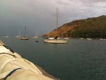 Nous passons ces 3 jours à Phuket où Sophie vient rejoindre Hugues : Farniente, Marina, piscine, restau branché de Phuket, plage des Français. Le 3ème jour, nous reprenons la mer pour les îles Sémillanes, mais nous ferons escale pour la nuit à la pointe Sud de l’île de Phuket, dans la crique de Naiharn beach à l’abri du grain qui approche. Cyril et Hugues doivent y rencontrer un navigateur qui cherche à réunir une flottille d’une vingtaine de bateaux. C’est la préparation du convoi pour la navigation dans le golfe d’Aden et l’entrée en Mer Rouge.