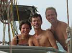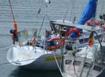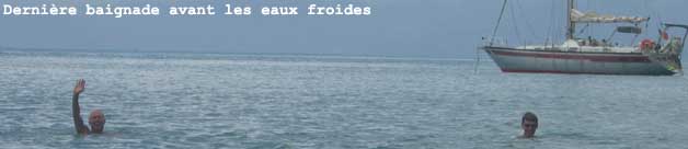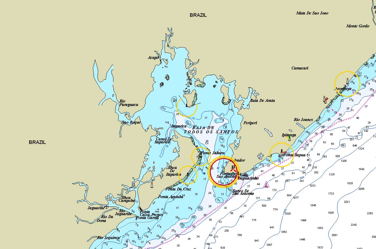 Pendant la traversée, RATAFIA a eu une avarie de barre (eh oui encore et pour les mêmes raisons qu'à l'Aber Wrac'h), sauf que la SNSM était trop loin (on avait pourtant dit: pas d'ANAGRO, pas de femme). L'incident s'est passé de nuit, et la panne a été réparée en moins d'1 heure en sertissant 1 mètre de l'ancien câble de l'Aber Wrac'h sur le câble cassé. Cette panne surviendra encore car la poulie de renvoi de cette drosse de barre semble être d'un trop petit diamètre, donc le câble se plie. C'est un très gros travail de changer la taille de cette poulie de renvoi. Il a donc fallu acheter un peu de matériel pour réparer la prochaine fois. Geneviève et Bernard sont restés 1 semaine. Ils ont pu naviguer un peu. Ils ont terminé leur séjour dans un hôtel, dans lequel Cyril et Hugues ont pu prendre quelques douches. "Un très grand confort, et un plus très agréable pour nous!!" a dit l'équipage. RATAFIA est arrivé à Salvador de Bahia, lieu mythique de la mini transat. La baie de Bahia est très jolie et ressemble bien à notre cher Golfe du Morbihan (cliquer sur la carte ci contre). L'eau est assez chaude à 27- 28°, ce qui permet à tout un tas de trucs de pousser sur la coque. Il est donc nécessaire de caréner souvent. Lors de la recherche d'un endroit pour échouer, un plongeur local s'est proposé de faire le carénage pour la modique somme de 20 €uro. Les prochaines navigations: Les îles Abrolhos (cliquer sur l'image ci contre), classées réserve, à mi chemin entre Salvador et Rio. Je vous conseille une petite recherche sur cet archipel (attention, c'est au Brésil, pas en Australie). Il faudrait être à Rio le 17 ou 18 novembre, pour voir Stéphane qui y sera en escale, et aura peut être des pièces pour le bateau ou du courrier. |