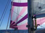 | Le 3 Décembre on est prêt. A la sortie de la crique, au mouillage de Paraty Mirim, on est cueilli par un bon vent qui nous pousse à 8 nœuds sur de l’eau plate et on doit vite prendre deux ris. Puis on reprend tranquillement notre rythme de croisière et nos quarts de nuit. Ca commence toutefois à sentir le sud : le régime météo est beaucoup plus instable, et nous amène à faire plus de manœuvres de voiles. | |