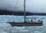 Seño Pia: on va avec Ratafia jusqu’au pied du glacier, à caresser les glaçons qui s’en détachent avec fracas. Le mouillage associé, Caleta Beaulieu, est un des plus majestueux de notre périple. |