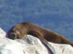 1 tout petit labyrinthe entre des îlots, nous retrouvons les lions de mer qu’on n’avait plus vus depuis la colonie d’Ushuaia. C’est vrai qu’on commençait à trouver que toute cette nature manquait un peu de vie ; mais à présent ils jaillissent tout autour de nous : ils sont élégants et gauches à la fois, comme des têtards géants qui joueraient à saute mouton dans les vagues. |