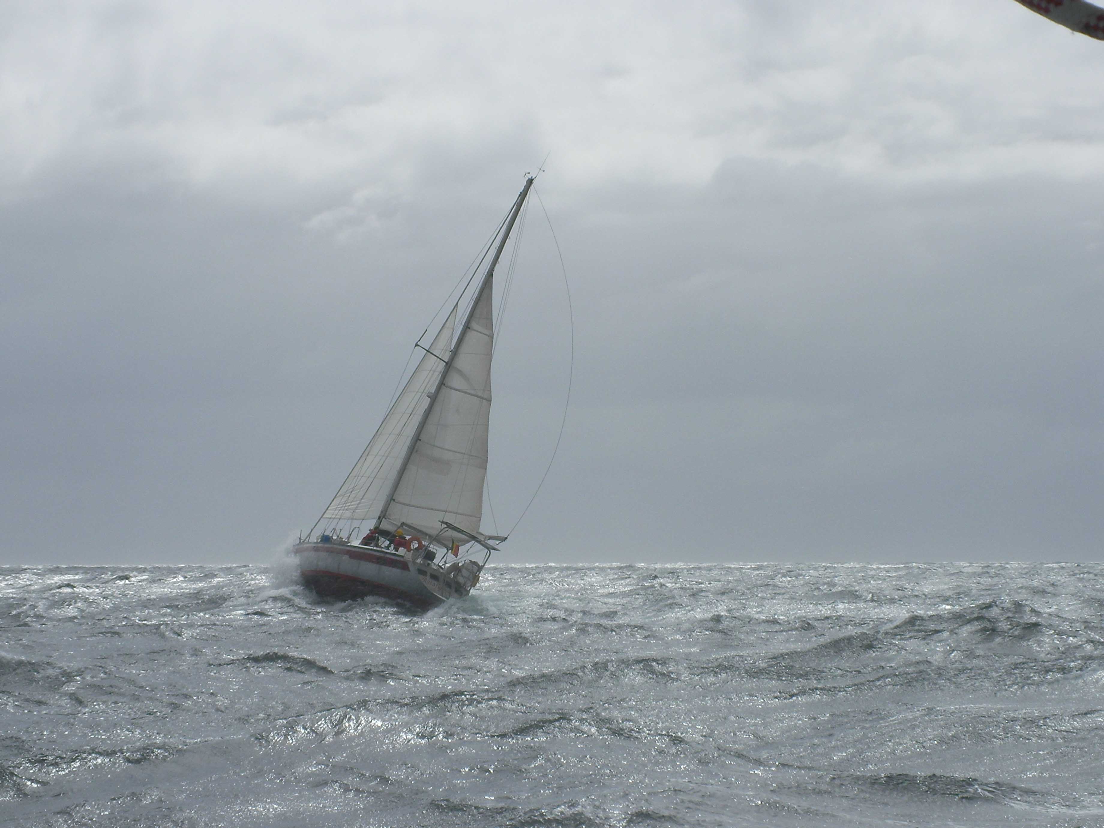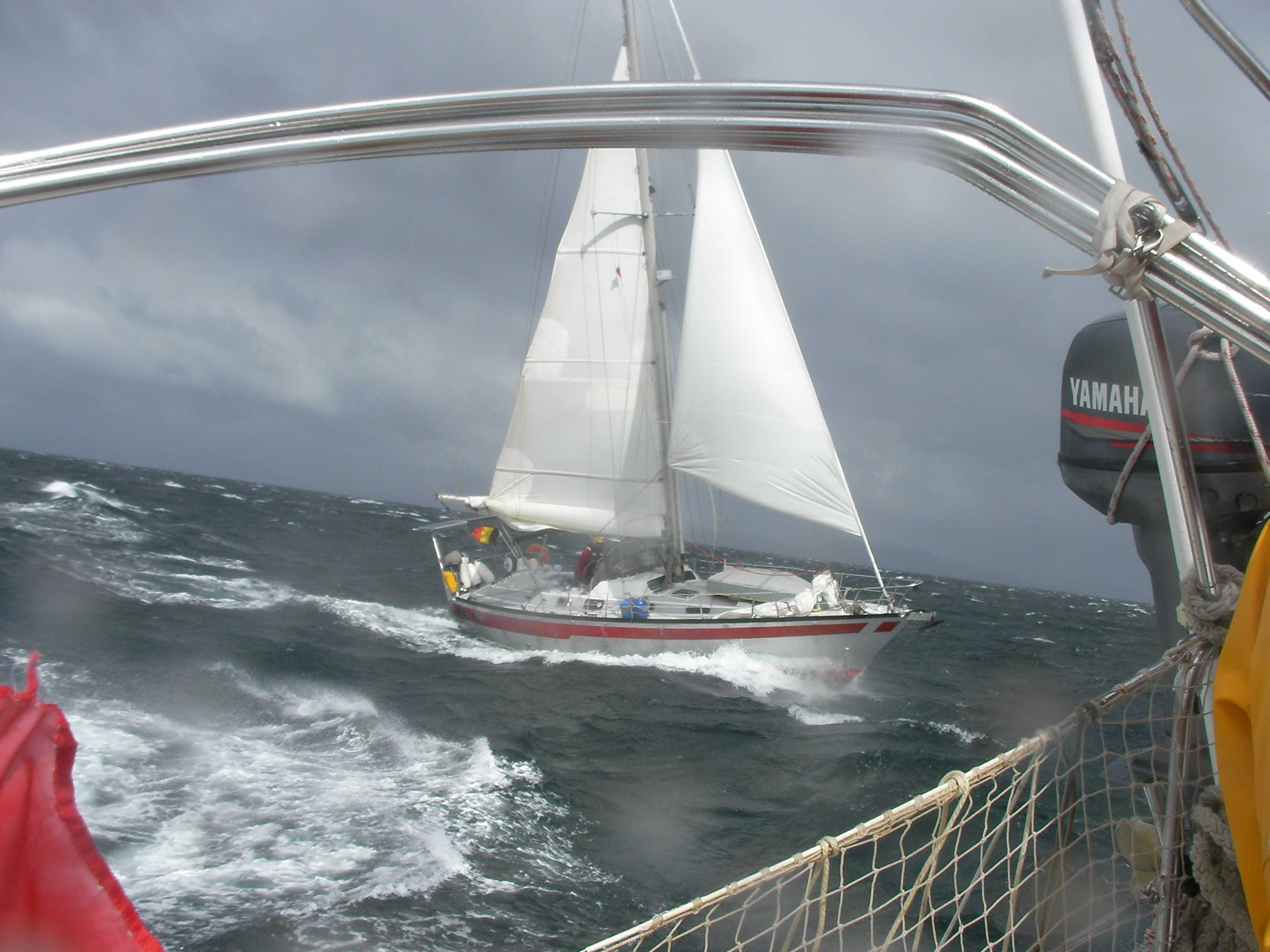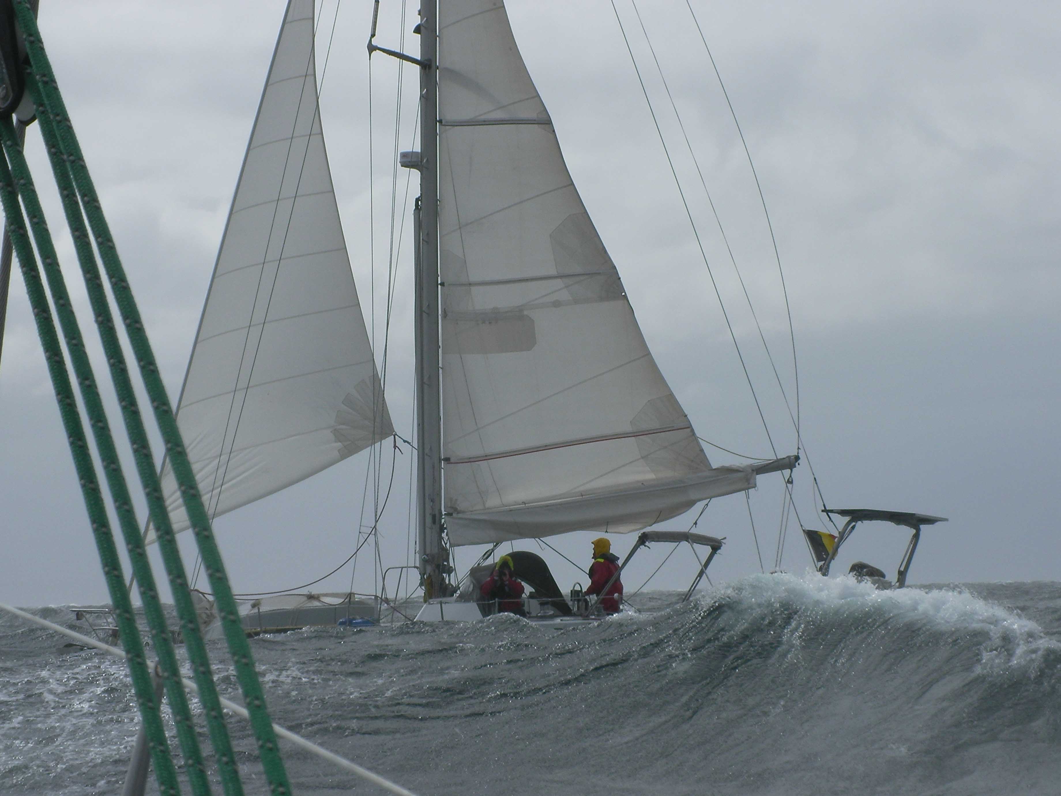 ON L'A FAIT !!!!!!!!!Et en plus pas dans des conditions de chochottes. On a pris 40 Kts de vent, on pense que quelques heures plus tard cela ne passait plus car on a eu la chance de ne pas avoir une mer encore trop formée. Je ne te cache pas que Cyril et moi, on en est particulièrement fiers.