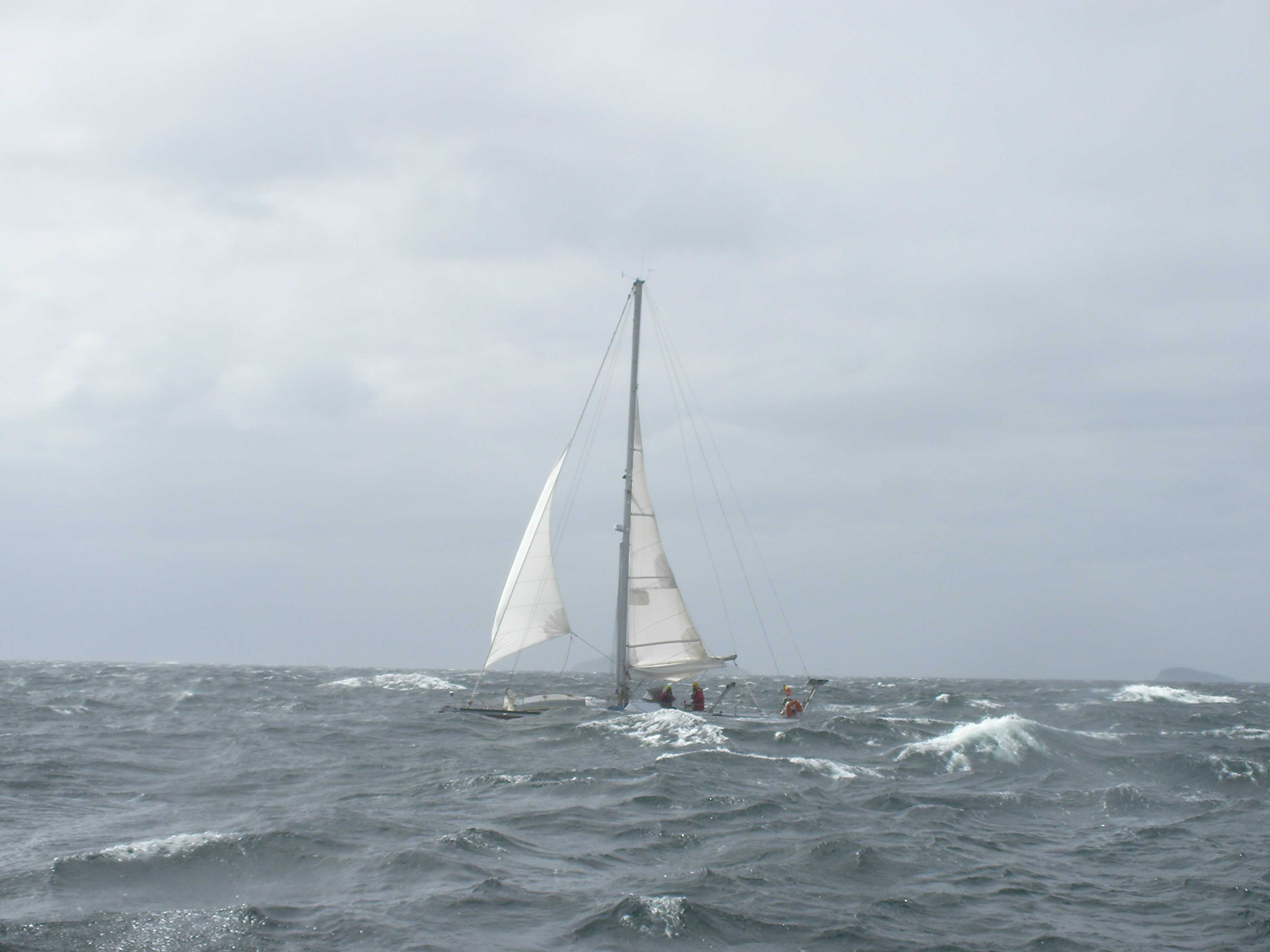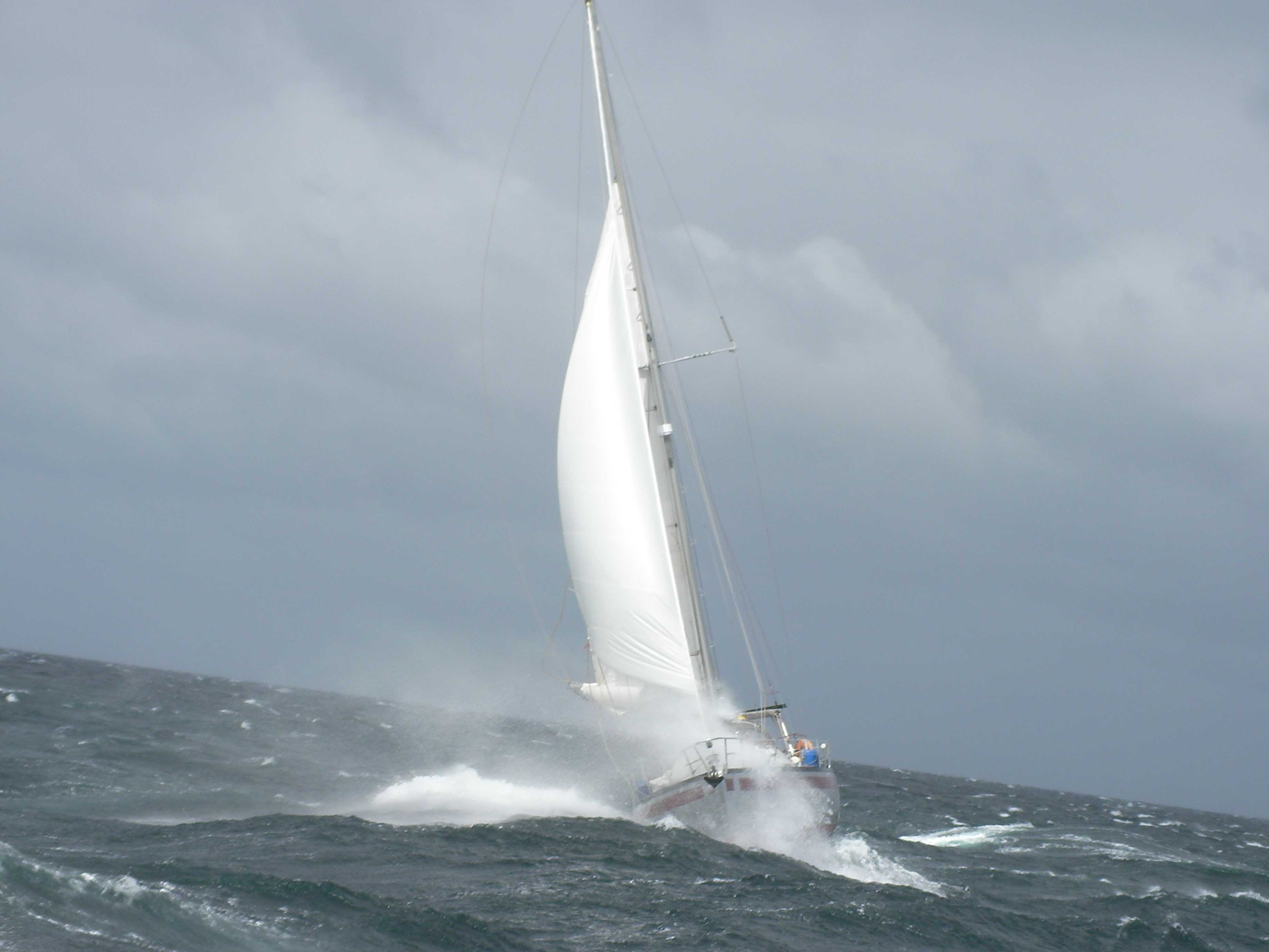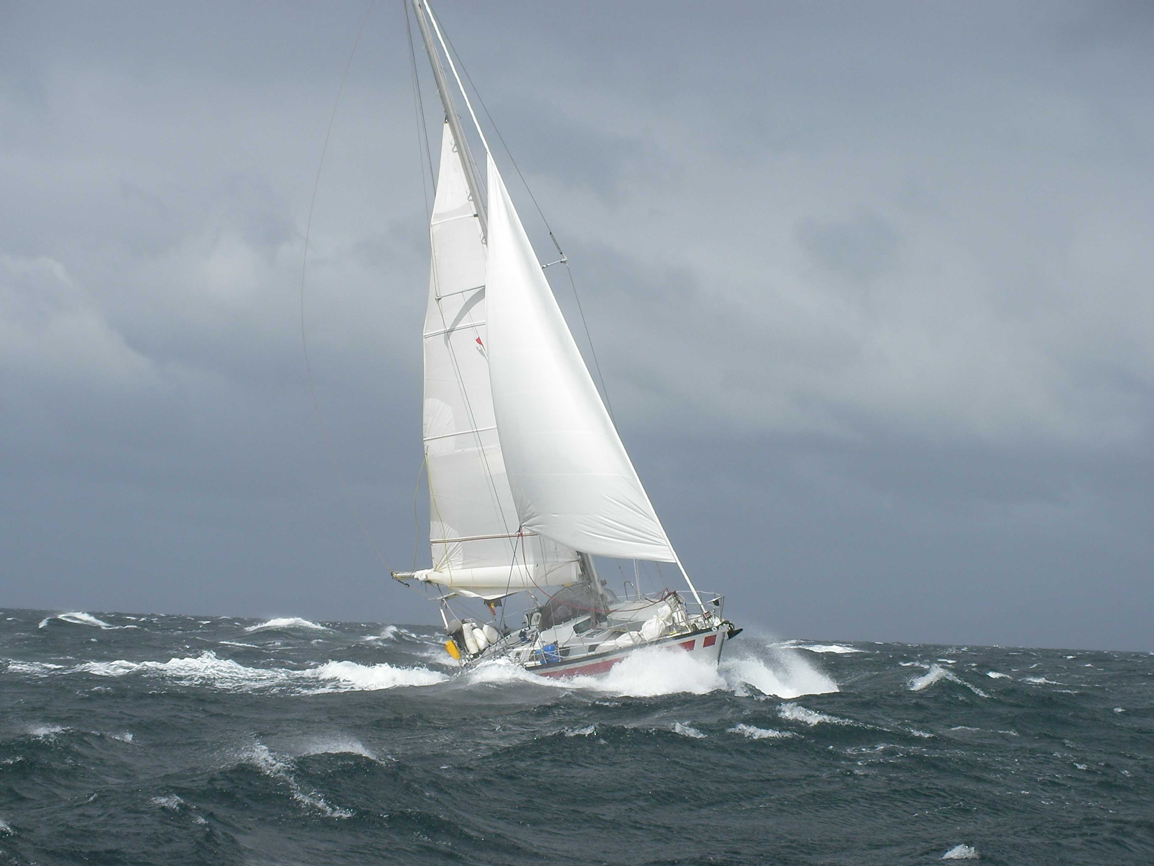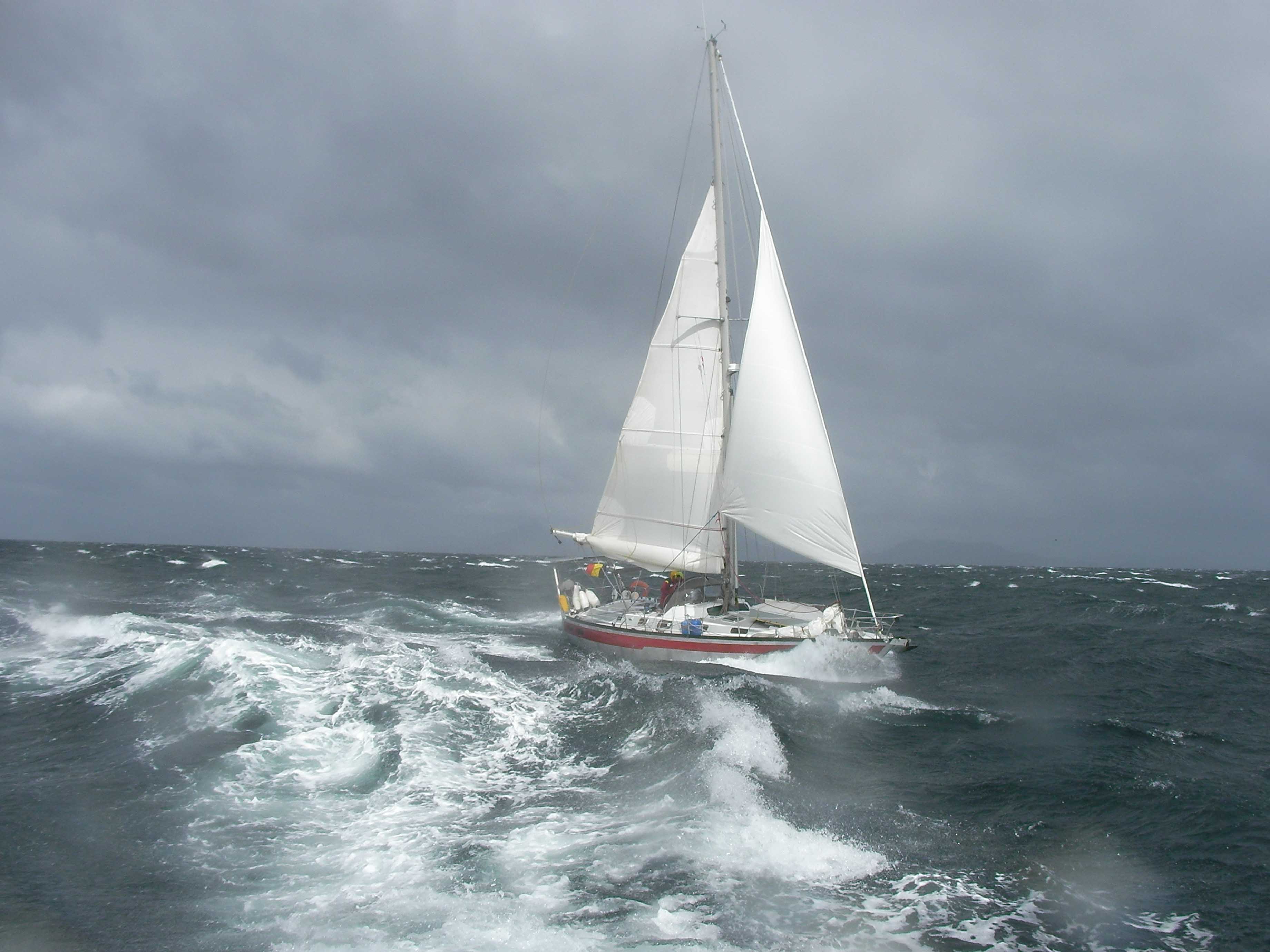 ON L'A FAIT !!!!!!!!!Et en plus pas dans des conditions de chochottes. On a pris 40 Kts de vent, on pense que quelques heures plus tard cela ne passait plus car on a eu la chance de ne pas avoir une mer encore trop formée. Je ne te cache pas que Cyril et moi, on en est particulièrement fiers.