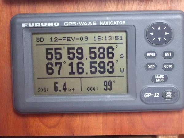 C’était trop beau, le vent tourne puis tombe, on relance le moteur, mais après quelques heures, celui-ci se met à vibrer. C’est la transmission qu’on avait changée à Ushuaia qui s’est ramollie puis déformée, sous la traction de l’hélice dans les surfs de ces derniers jours. Du coup l’ensemble a reculé et on prend même un peu l’eau à la sortie de l’arbre…heureusement il nous reste bien quelques plaques d’aluminium et un peu de colle (Patex cette fois ci), on va arranger ça. |