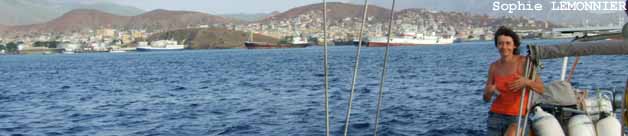 Pendant les longues navigations, nous prenons notre rythme pour la vie en quart : après avoir essayé plusieurs formules (3H-3H, 4H-4H) il semble que la meilleure soit de diviser la nuit en deux : je prends le quart de 23H à 4h du matin et Cyril celui de 4 à 9H. Avec ce rythme, on dort aussi beaucoup pendant la journée, si bien que nous n'avons pas le sentiment d'être trop fatigués à l'arrivée. Et puis, en navigation, je ressens le fait que j'ai enfin le temps de m'attarder sur les tâches sans (trop) penser déjà à la tâche suivante – que ce soit régler le bateau, les petits bricolages qui ne manquent pas, ou la lecture. Mais il y a encore du travail de déconditionnement… Dernier fait marquant : je n'ai plus de GSM. C'était plus difficile que de rendre ma voiture.